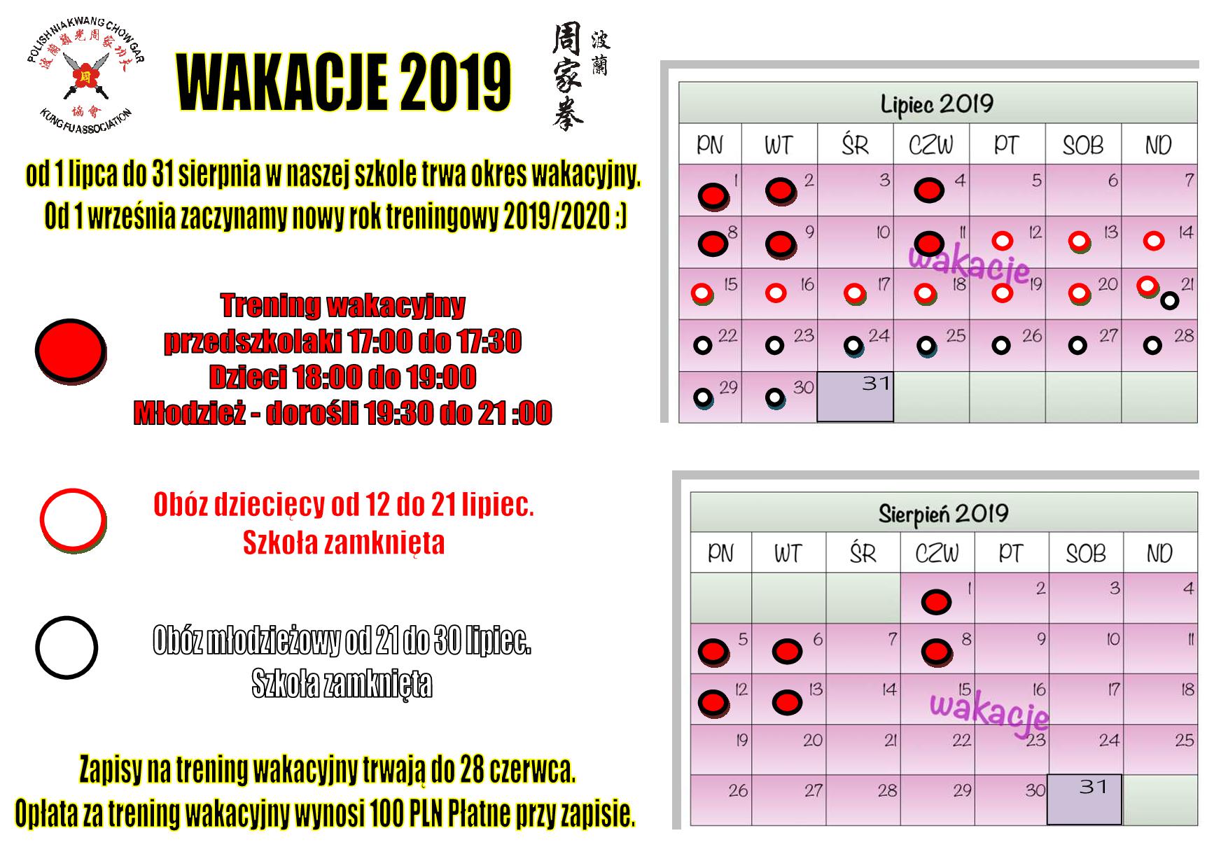 3. Od 1 lipca do końca sierpnia zaczynamy okres wakacyjny. Poniżej podajemy rozpisany pan treningów, obozów i dni wolnych.