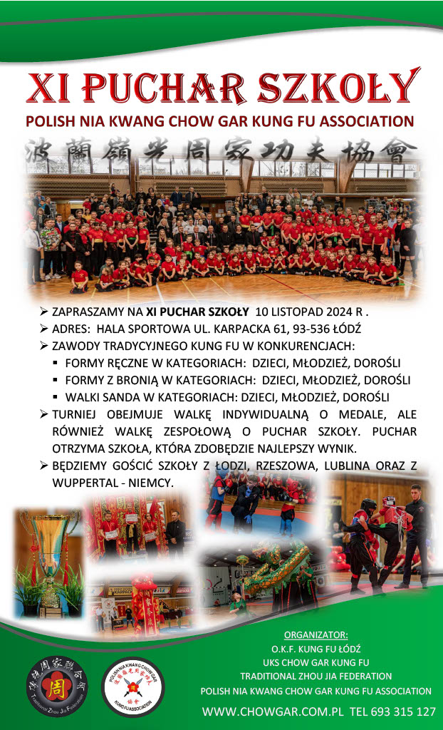 ZAPRASZAMY NA ,,XI PUCHAR SZKOŁY POLISH NIA KWANG CHOW GAR KUNG FU ASSOCIATION’’ .