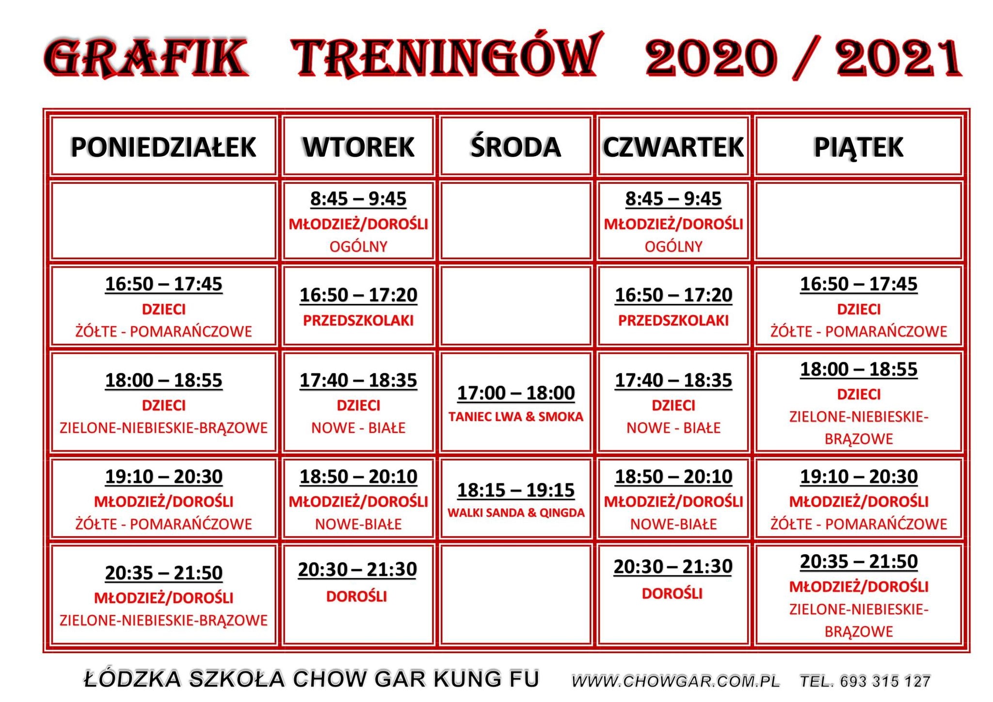 Od 7 września rozpoczynamy nowy rok treningowy 2020/2021. Prosimy zapoznać się z nowym grafikiem zajęć oraz regulaminami szkoły.