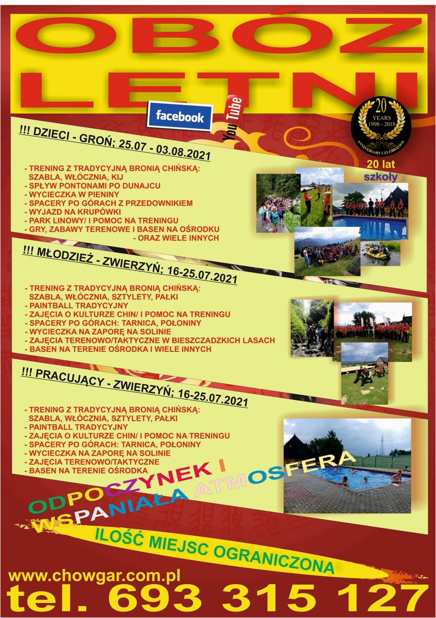 MŁODZIEŻ - OBÓZ KUNG FU, BIESZCZADY 2021- informacje